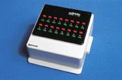 sinais, agulhas, sistemas de luzes, etc. Cada Keyboard contém 16 comandos duplos (32 teclas) de função oposta (verde/vermelho, ligado/desligado, a direito/em ramal). Cada keyboard é codificado com um endereço (1 a 16), o que, pela associação de diversos keyboards, permite a actuação de e até 256 solenóides (1-16, 17-32, 33-48, etc). |