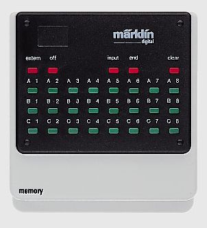 Também pode ser associado a outras Memory ou Keyboard. A Memory possui, adicionalmente, uma importante capacidade que lhe permite ser autónoma da teclagem manual; Quando ligada aos Encoders de via, pode ser actuada externamente sem recurso à teclagem manual. Esta capacidade é particularmente útil na gestão automática dos sinais de protecção de via. Ex: Uma locomotiva actua um sensor de via, é gerado um sinal codificado pelo encoder, enviado à Memory que gera um comando para a Central Unit (para o sistema). |