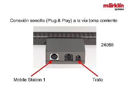 Esta conexão foi concebida para uma fácil e rápida ligação da Mobile Station à linha. Em particular foi sobretudo pensada para o uso de crianças. Se a caixa estorva ou não se integra na maqueta pode sempre separar-se e colocar-se num lugar em não incomode, inclusivamente debaixo da Maqueta. Também se encontra previsto a sua aquisição em separado.